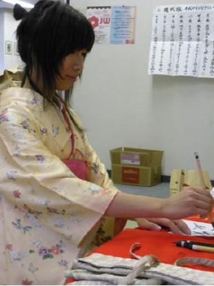 着物を着て書道を♪